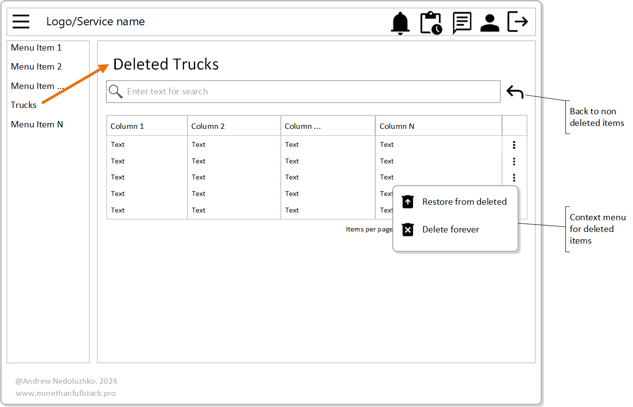 For example Admin role have permission to work with delete items for each feature that is why it will have Deleted items button